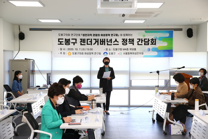 [시민일보 = 여영준 기자] 서울 도봉구의회(의장 박진식) 의원 연구단체인 ‘성인지적 관점의 여성정책 연구회’가 최근 구청 M4층 위당홀에서 젠더거버넌스 정책 간담회를 열었다.