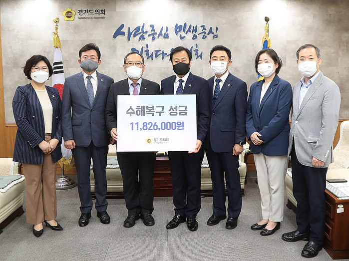 장 의장은 “경기도의회는 집중호우 발생 직후 수해지역 봉사활동과 침수피해 현장점검 등을 실시하며 현장의 목소리를 듣고 해결책을 모색하기 위해 노력해 왔다”면서 “의원과 직원들이 자발적으로 마련한 이번 재난안전취약계층 지원금이 수해를 입은 도민에게 도움이 되길 희망한다”고 답했다.