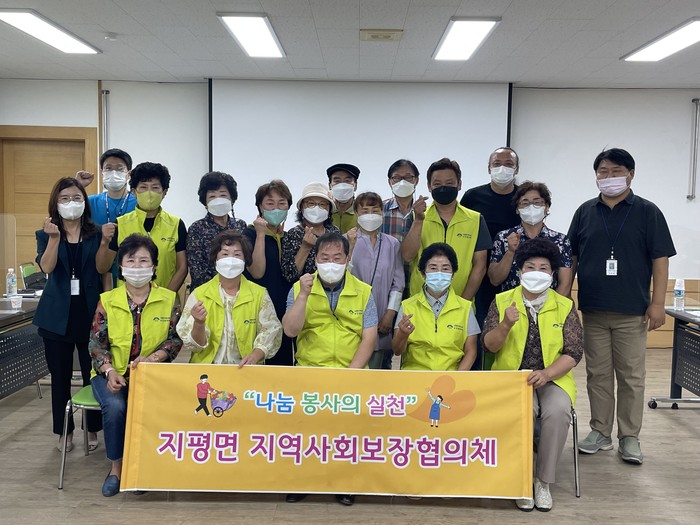 경기 양평군 지평면 지역사회보장협의체는 최근 ‘코로나19 극복을 위한 마스크 배분 사업’으로 KF94 마스크 3140장 봉투 포장과 주소 라벨 작업 봉사활동을 실시했으며, 마스크는 지역내 취약계층 157가구에 우편 배송될 예정이다. 사진은 이날 참여한 봉사자들이 기념촬영을 하고 있는 모습. (사진제공=양평군청)