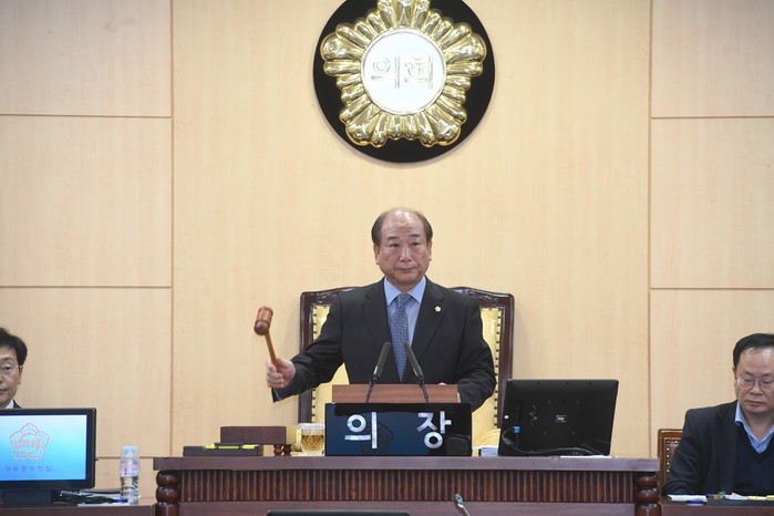 | ▲ 윤준용 의장이 정례회 폐회를 알리고 있다. (사진제공=영등포구의회) |