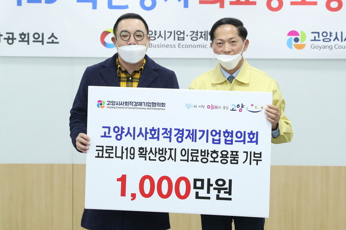 [고양=이기홍 기자] 고양시는 지난 25일 고양시사회적경제기업협의회(회장 이기훈)에서 코로나19 확산방지 지원을 위해 1천만원을 쾌척하였다고 밝혔다.