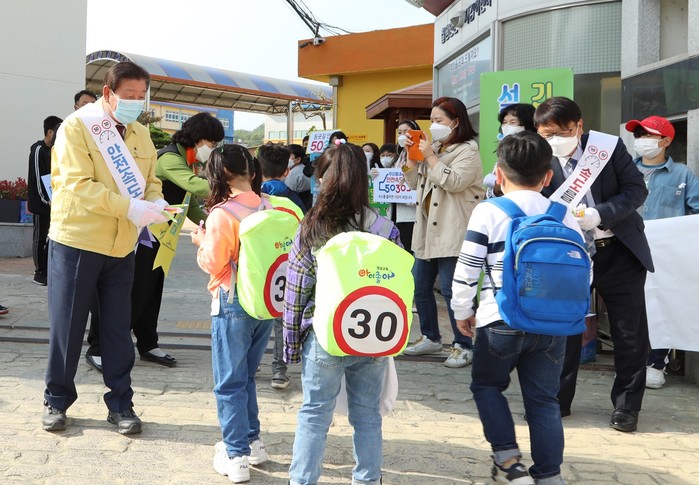 ‘안전속도 5030’을 군민들에게 널리 홍보하고 안전의식에 대한 경각심을 일깨우기 위해 실시한 이날 캠페인에서 참가자들은 생활 속 거리두기 실천을 위하여 마스크 착용 등 방역 수칙을 철저히 준수하며 학생들에게 정책의 내용을 안내했다.