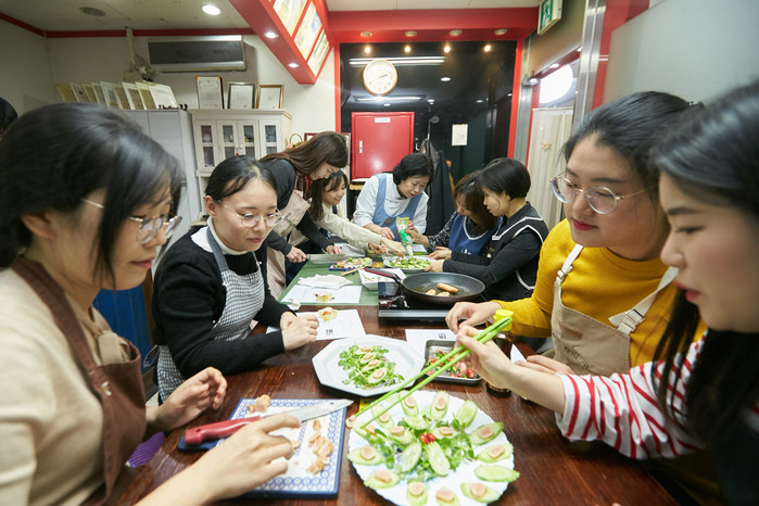 | ▲ 지난해 3월 열린 '1인가구 요리교실' 참여자들이 요리수업 후 만든 음식을 함께 먹으며 이야기를 나누고 있다. (사진제공=서초구청) |
