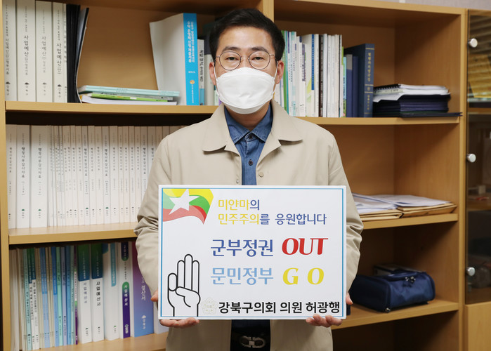 | ▲ 허광행 의원이 '미얀마 민주주의 회복 응원' 챌린지에 동참하고 있다. (사진제공=강북구의회) |