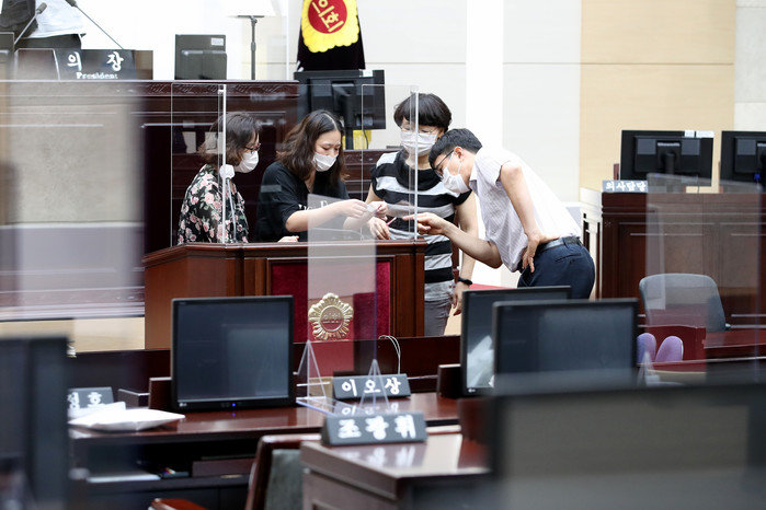 또한 본회의장 출입자에 대해 체온측정과 손소독을 실시 한 뒤 입장키로 하고, 본회의장과 상임위원회 회의실에 비말차단 칸막이를 설치하는 등 코로나19 위기극복을 위한 의회 차원의 방역조치 수위를 강화했다고 밝혔다.