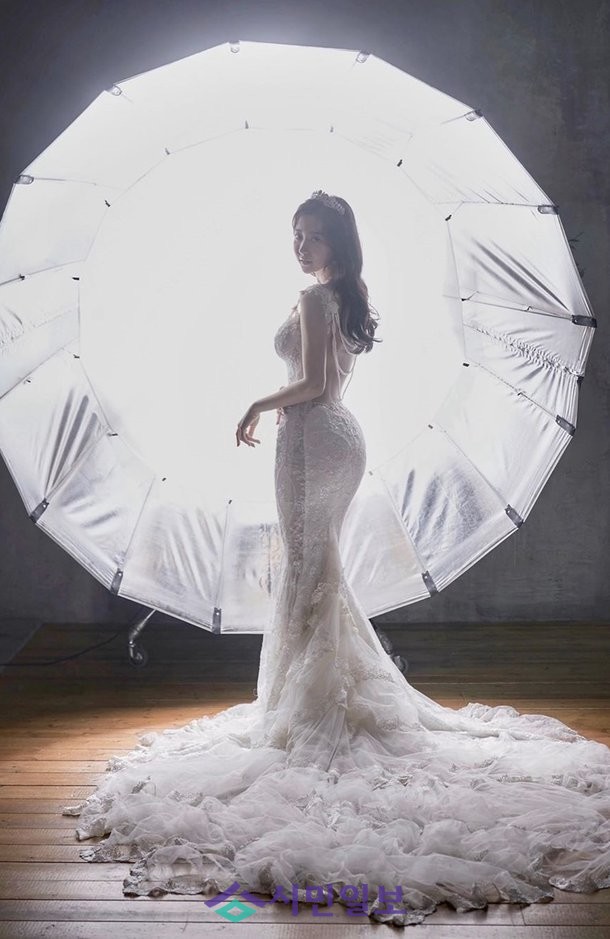 공개된 사진 속에는 웨딩드레스를 입고 카메라를 응시 중인 신재은의 모습이 담겨 감탄을 자아냈다.