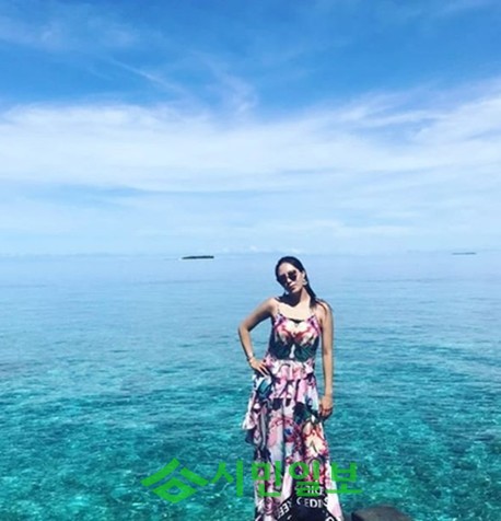 강남은 자신의 인스타그램에 “하늘 바다 와이푸 다 이쁘네요 #몰디브 #부부 #남편이 찍어준 사진”이라는 글과 함께 한 장의 사진을 게재했다.