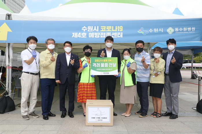 이날 조석환 의장과 김기정 부의장, 유재광 의회운영위원장은 지역내 코로나19 선별진료소, 수원1~4호 예방접종센터, 시 재난안전대책본부 등 10곳을 찾아 격려물품을 전달했다.