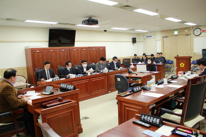 | ▲ 경기도의회 '경기도 테크노밸리 조성을 위한 운영 지원 특별위원회'가 최근 제5차 회의를 열고 특위 주요 활동내용이 담긴 '활동결과보고서'를 채택했다. 사진은 이날 회의에서 그동안의 활동성과를 공유하고 있는 의원들의 모습. (사진제공=경기도의회) |