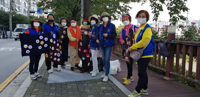 이날 주민들은 뜨개옷을 벚꽃나무에 입히면서 주민화합 및 양말(봉제)산업의 발전을 기원했다.