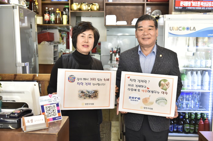 신 의장은 “가치 있는 소비를 통해 소상공인을 응원하는 착한 결제가 지역사회에 널리 퍼져 소상공인에게 힘이 되길 바란다”며 “양천구민의 화합된 단결과 용기로 코로나19를 슬기롭게 극복할 수 있길 기대한다”고 전했다.