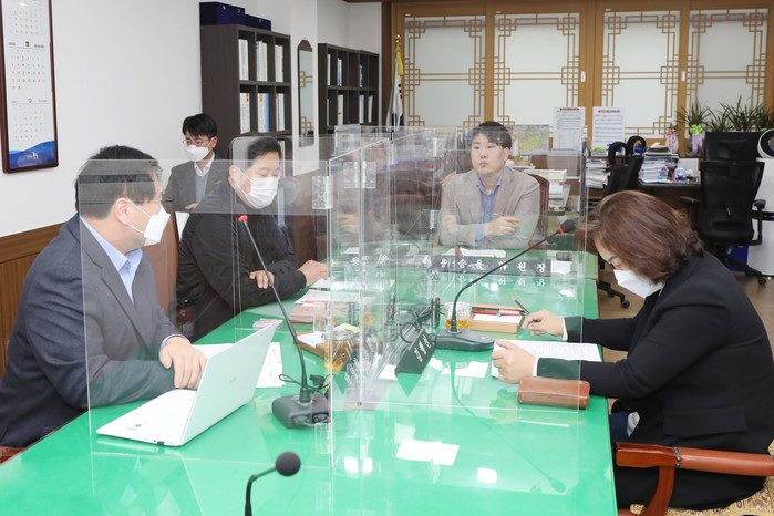| ▲ (왼쪽부터)박영한 위원, 길기영 위원, 이승용 위원장, 김행선 위원이 회의를 하고 있다. (사진제공=중구의회) |