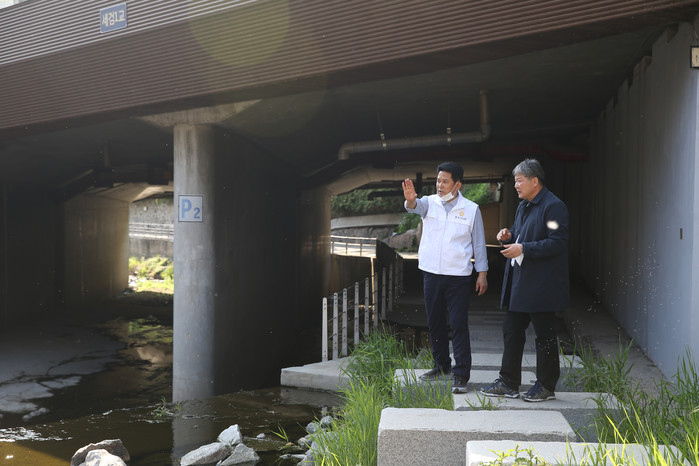 정 의원은 구 관계자와 함께 홍제천을 둘러보며 청계천처럼 깨끗한 물이 흐를수 있는 홍제천 조성, 노후된 교량 교체, 교량을 통한 도시가스 공급을 통한 주민 불편 해소 등을 요청했다.