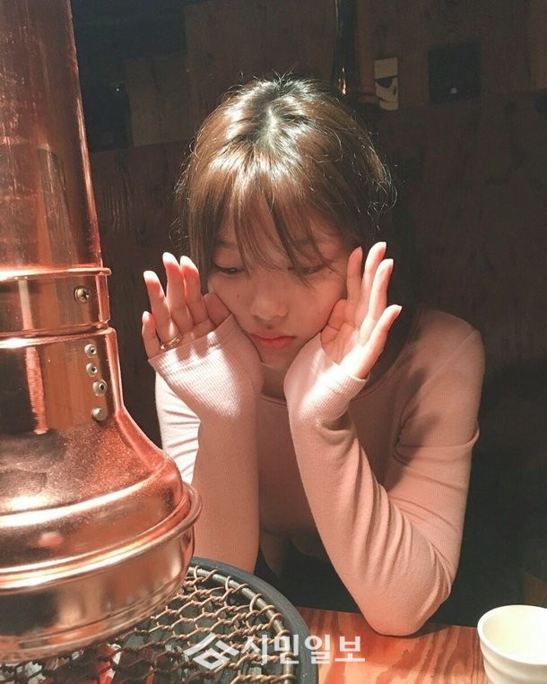 공개된 사진 속 김유정은 테이블을 바라보며 양 손을 얼굴에 대고 있는 모습으로 이목을 사로잡았다.