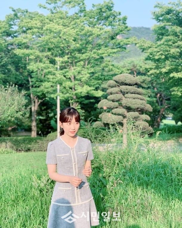 공개된 사진 속 김슬기는 하늘색 투피스를 입고 청순미를 드러내 감탄을 자아냈다.