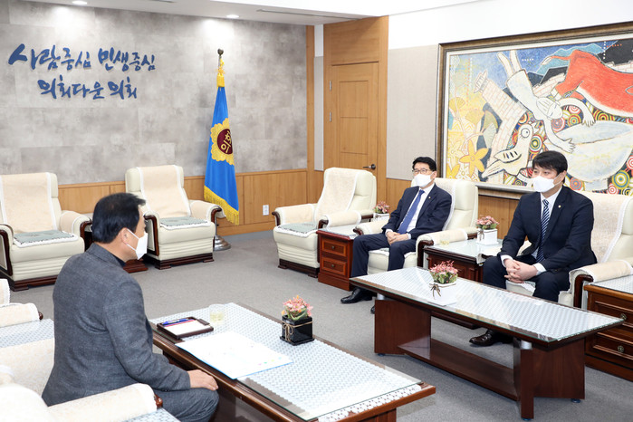 [수원=임종인 기자] 경기 수원시의회 조석환 의장 및 김기정 부의장이 최근 장현국 경기도의장을 만나 이재명 경기도지사가 발표한 ‘경기도 공공기관 3차 이전 계획’과 관련해 의견을 나눴다.