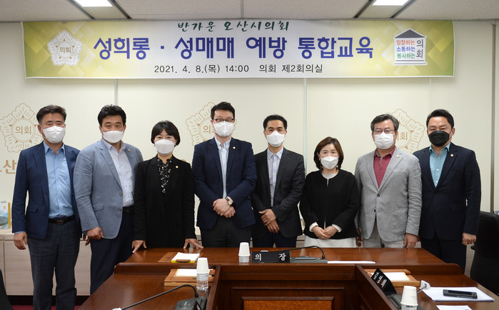 [오산=김정수 기자] 경기 오산시의회는 최근 의회 제2회의실에서 의원 전원과 의회사무과 직원들이 참석한 가운데 '성희롱·성매매 예방 통합교육'을 했다고 12일 밝혔다.