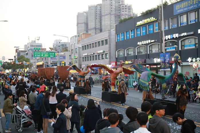 강동선사문화축제의 백미 차 없는 거리 ‘선사거리퍼레이드’는 축제 이튿날인 12일 펼쳐진다. 올해 거리퍼레이드는 이전해와 달리 꽃·새·물 등을 활용해 평화로운 선사마을을 지킨다는 스토리로 예술인·주민이 함께 상상력을 발휘한다.
