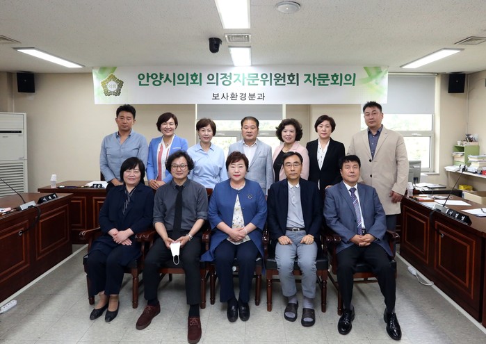| ▲ 자문위원 및 보사환경위원들이 회의 후 기념촬영을 하는 모습. (사진제공=안양시의회) |