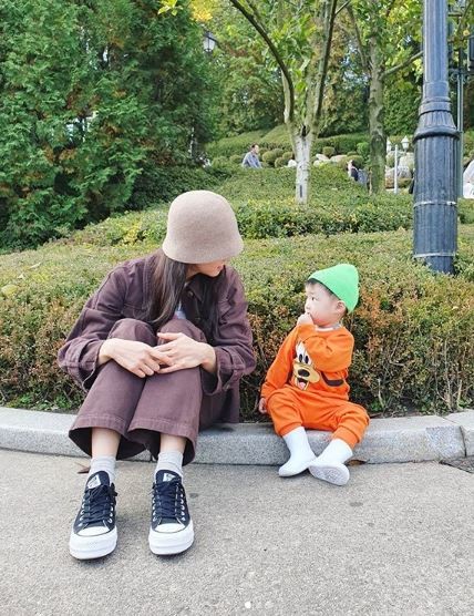 공개된 사진에는 이시영이 아들과 나란히 앉아 눈을 맞추고 있는 모습이 담겼다.