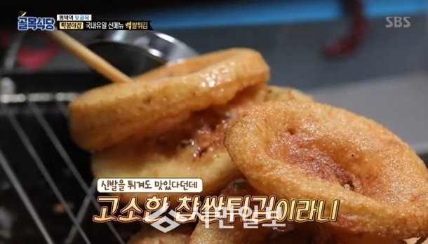 그렇게 완성된 도넛 모양 튀김은 호떡처럼 보였지만 입에 넣자마자 바삭바삭 소리가 들려와 감탄을 자아냈다. 백종원은 “이게 특징이 뭐냐면 잘 봐라. 바깥쪽이 얇아 바삭하다. 가운데 부분은 두꺼워서 쫄깃하다. 이것만 먹어도 맛있지만 국물이랑 먹으면 맛있다. 이거 하나만 팔아도 정신없을 거다. 만들기 바쁠 거다”고 말했다.