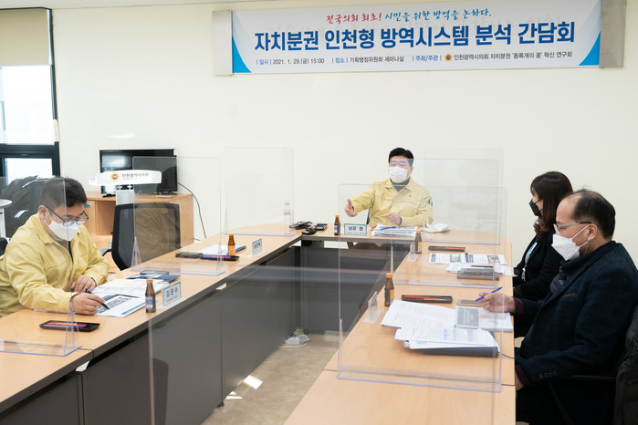 [인천=문찬식 기자] 인천시의회는 자치분권 ‘동록개의 꿈’ 혁신연구회가 최근 시의회 세미나실에서 ‘자치분권 인천형 방역시스템 구축 간담회’를 열고 전국 의회 최초로 자체 방역시스템 구축을 위한 토대를 마련했다고 2일 밝혔다.