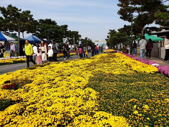 ▲ 국화축제를 방문한 관람객들이 국화로 수 놓인 도로를 걷고 있다. (사진제공=영암군청) |