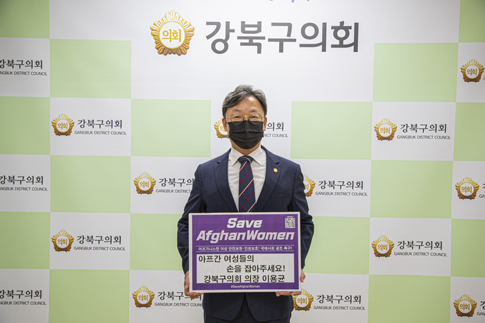 [시민일보 = 홍덕표 기자] 이용균 서울 강북구의회 의장(삼양동, 송천동, 삼각산동)은 최근 아프가니스탄 여성 안전보장과 인권 보호를 위한 '#SaveAfghanWomen Campaign' 챌린지에 참여했다.