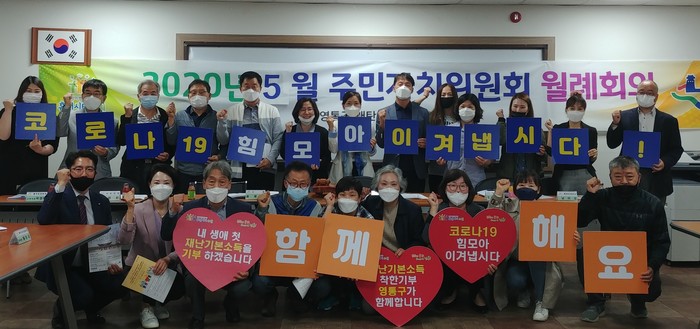 경기 수원시 영통구 매탄3동 주민자치위원회는 11일 코로나19 피해지원을 위한 후원금 210만원을 경기사회복지공동모금회에 기탁했다. 사진은 기탁식에 참석한 관계자들이 기념촬영을 하는 모습. (사진제공=영통구청)