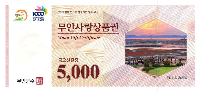 | ▲ 무안사랑 상품권 5,000원(출처=무안군청) |