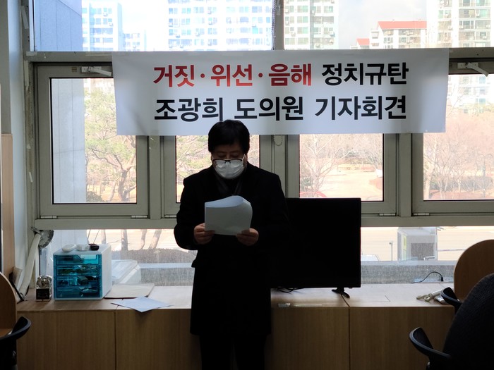 [안양=최휘경 기자] 경기도의회 조광희(사진) 의원은 15일 안양시청 브리핑실에서 기자회견을 열고 "이승경 전 안양시의원이 불순한 의도를 가지고 허위사실을 유포해 본인을 음해하고, 이를 통해 주민을 선동해 정치적 목적 실현을 획책했다"며 이 전 시의원을 사법당국에 고발할 예정이라고 밝혔다.