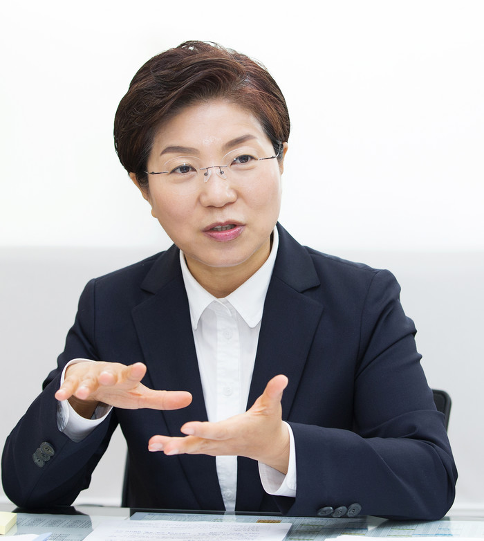 | ▲ 지난해 9월 열린 '2020 참여예산·협치 선정과제 사업계획 공유회'에서 인사말을 하고 있는 김미경 구청장. |