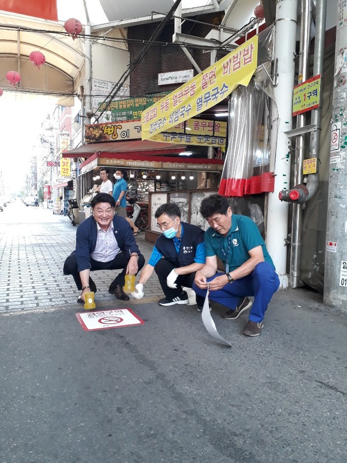 이날 홍 의원은 금연구역 지정 안내문 부착 작업 및 금연구역 홍보 등 계도활동을 진행했다.