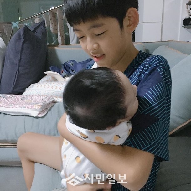 또 다른 사진에는 집 안에서는 동생을 사랑스럽게 안고 있는 정안 군의 모습이 담겨 훈훈함을 자아냈다.