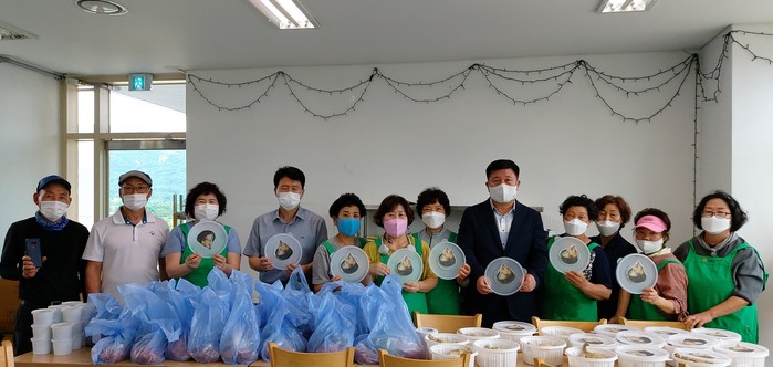경기 양주시 회천4동 새마을부녀회는 최근 지역내 저소득 홀몸노인가구를 대상으로 삼계탕 나눔 행사를 진행했다. 사진은 행사에 참여한 관계자들이 기념촬영을 하고 있는 모습. (사진제공=양주시청)