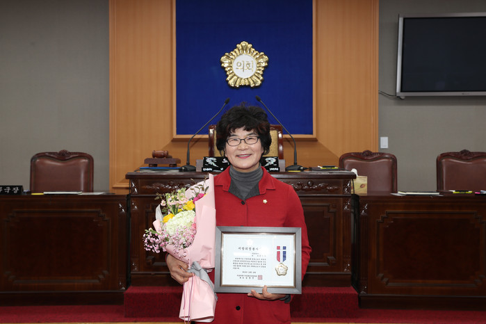 시구의회의장협의회에서 시상하는 지방의정봉사상은 투철한 사명감과 봉사정신으로 지방의정 발전과 주민 화합을 위해 헌신적으로 봉사하는 등 지역사회 발전에 기여한 공이 있는 지방의회 의원에게 수여하는 것이다.