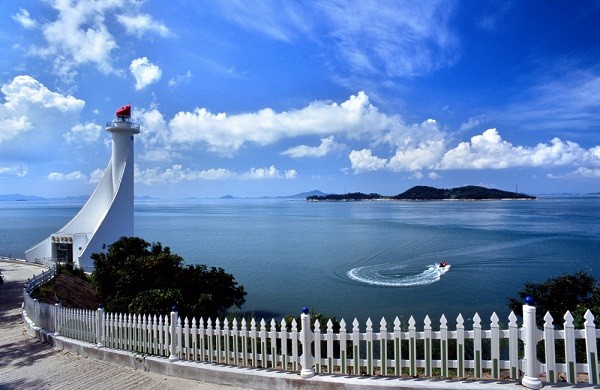 해양수산부의‘9월 이달의 등대’로 선정된 해남군 화원면 매월리 위치한 목포구등대와 화원반도 앞에 펼쳐진 섬,섬,섬들 |