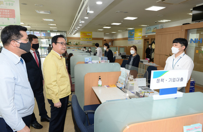 한정우 창녕군수는 2일, NH농협 창녕군지부 및 경남신용보증재단 창녕지점을 방문해 코로나19 관련 소상공인 특례보증 업무 등에 매진하고 있는 직원들을 격려했다.