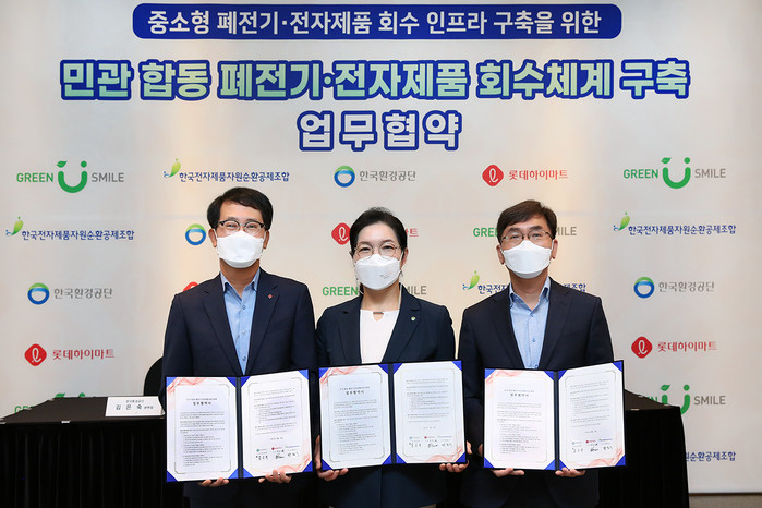 롯데하이마트는 중소형 폐가전으로 인한 환경문제를 개선하기 위해 한국환경공단, 한국전자제품자원순환공제조합과 손잡고 폐가전 회수 체계를 구축한다.