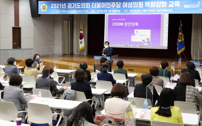 한편, 경기도의회 더불어민주당 여성의원협의회가 주최한 이날 교육은 김미리 회장(남양주1), 최경자 수석부회장(의정부1), 고은정(고양9)·김미숙(군포3) 부회장과 문경희 부의장(남양주2) 등 여성 도의원과 경기도 31개 시·군 의회 여성의원 등 총 70여명이 참석해 방역수칙을 준수한 가운데 진행됐다.