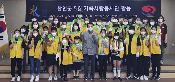 합천군(군수 문준희) 건강가정다문화가족지원센터에서는 지난 22일 가족사랑봉사단 14가족 44명이 합천군청 3층 대회의실에서 EM흙공을 만들고 환경보호 포스터를 그려보는 시간을 가졌다.