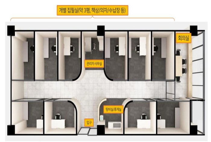 전용면적 167.9㎡(51평) 규모로 작가 개별 집필 공간 10실, 회의실, 사무공간 등이 구성됐다.