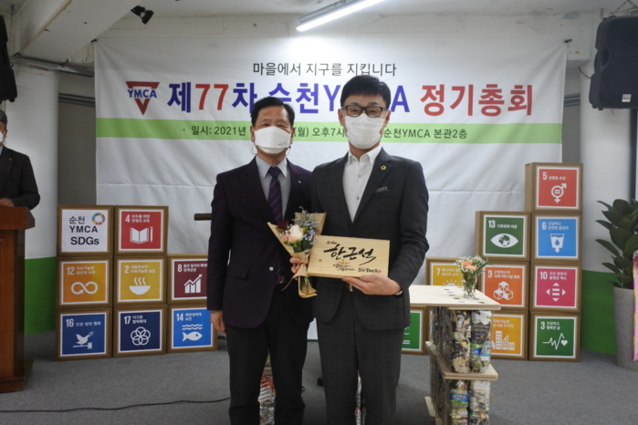 | ▲ 한근석 도의원이 순천 YMCA로부터 감사패 수상했다.(출처=전남도의회) |