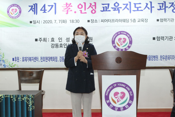 효인성문화원은 인성의 기본을 효로 보고 올바른 효를 배우고 가르칠 인성교육지도자를 양성하는 교육원으로, 2017년부터 총 168여명의 졸업생을 배출했으며, 이번 孝4기 입학생은 총 50명으로 20주간의 교육 기간을 거쳐 효·인성교육지도사 자격을 취득할 예정이다.