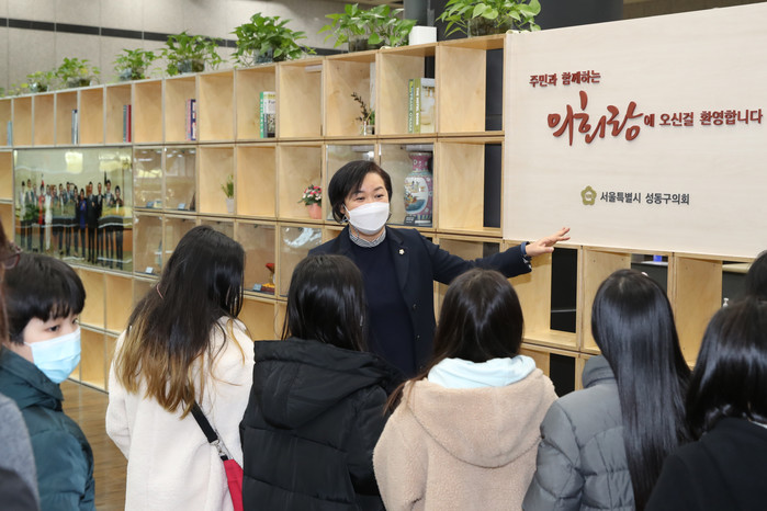 이 의원은 "성동구의회 견학을 통해 지방의회의 필요성과 역할에 대한 올바른 인식을 가질 수 있는 소중한 시간이 됐으면 한다"고 말했다.