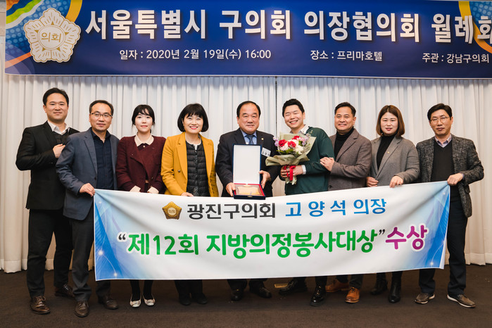 [시민일보 = 여영준 기자] 서울 광진구의회는 최근 고양석 의장이 전국 시·군·자치구의회 의장협의회로부터 '지방의정봉사대상'을 받았다고 밝혔다.