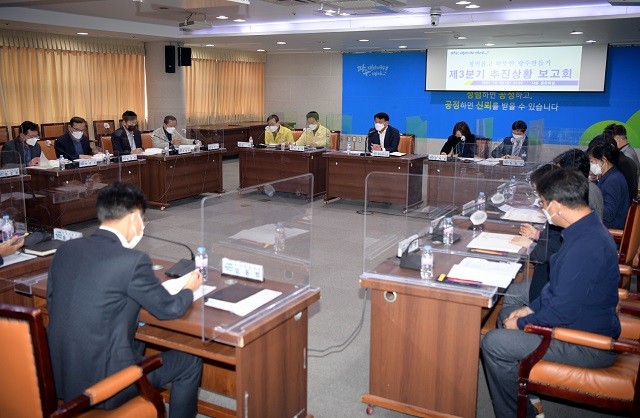 [광주=정찬남 기자] 광주광역시는 22일 오후 시청 중회의실에서 김종효 행정부시장 주재로 2021 ‘정의롭고 따뜻한 광주만들기’ 조성을 위한 4대 분야 23개 과제에 대한 3분기 추진상황 보고회를 가졌다.