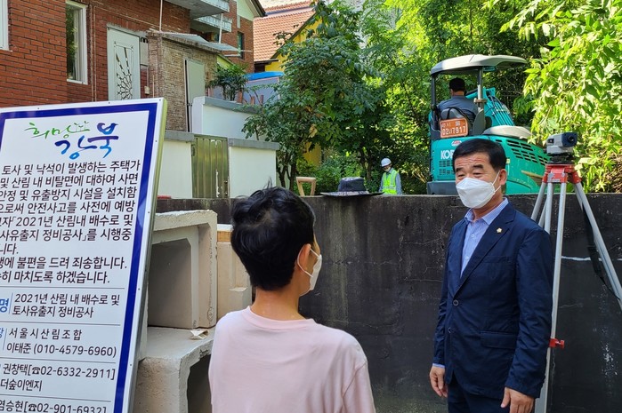 조 의원이 방문한 곳은 우이동 73-128 삼보빌라로 해당 빌라와 인근 주택가 뒤쪽으로 산이 위치하고 있어 비가 많이 오는 장마철이나 태풍이 오면 토사가 유출되고 빗물이 범람하는 등 피해가 자주 발생하는 곳이다.