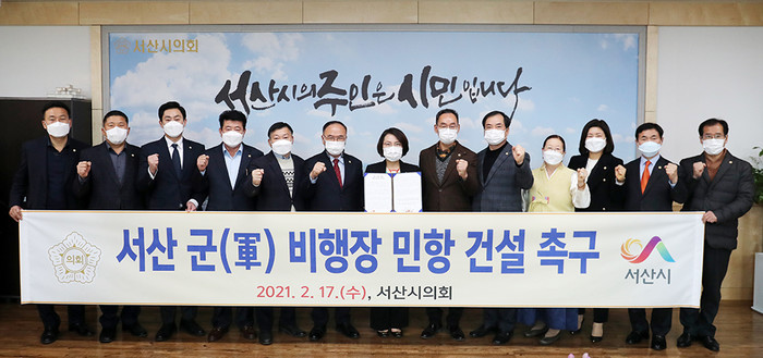 | ▲ 서산시의회는 17일 결의문을 발표하고 국가 균형발전 차원은 물론 18만 서산시민과 212만 충남도민의 오랜 숙원인 민항 건설을 조속히 추진해야 한다고 촉구했다. (사진제공=서산시의회) |