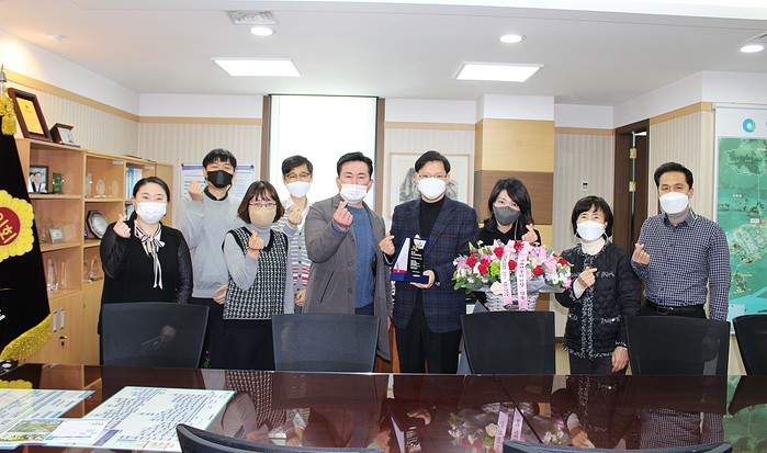 | ▲ 임지훈 교육위원장(오른쪽 네 번째)가 수상 후 관계자들과 기념촬영을 하고 있다. (사진제공=인천시의회) |